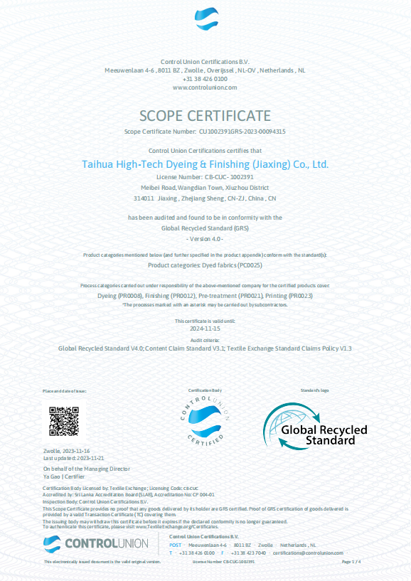 高新染整 GRS 認(rèn)證