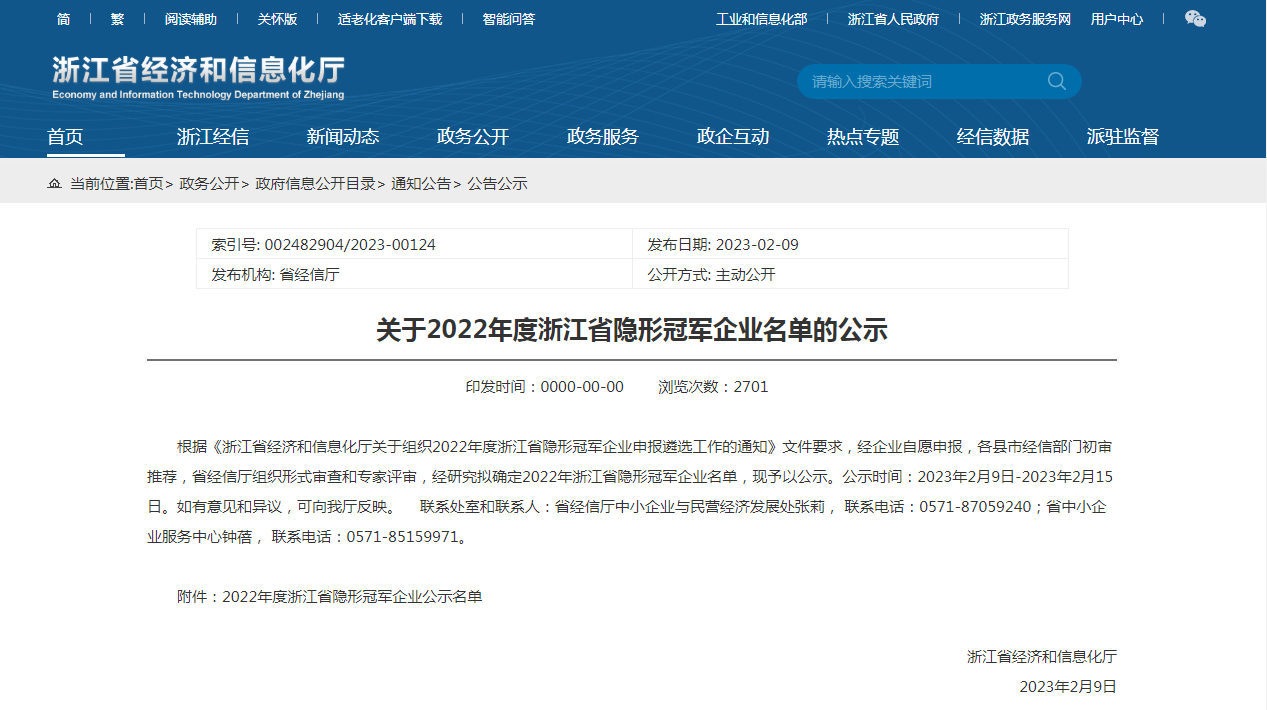 2月9日,浙江省經(jīng)濟(jì)和信息化廳發(fā)布的《關(guān)于2022年度浙江省隱形冠軍企業(yè)名單的公示》中,浙江臺華新材料股份有限公司上榜。