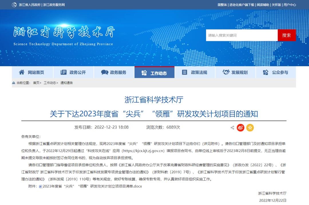 “尖兵”“領(lǐng)雁”研發(fā)攻關(guān)計劃由省級財政資金設(shè)立,圍繞建設(shè)“互聯(lián)網(wǎng)+”、生命健康和新材料三大科創(chuàng)高地和搶占“碳達峰、碳中和”技術(shù)制高點,聚焦十大標志性產(chǎn)業(yè)鏈、未來產(chǎn)業(yè)等重點領(lǐng)域,兼顧社會公益等重大技術(shù)需求,在全省范圍內(nèi)公開征集榜單。入選省級“尖兵”“領(lǐng)雁”計劃,彰顯了我司的科研攻關(guān)、科技創(chuàng)新綜合實力。