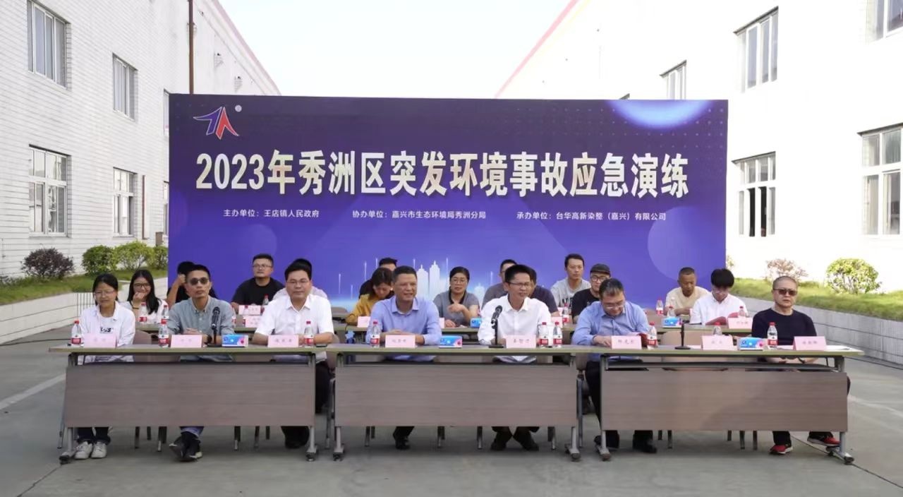 10月31日下午2點30分,2023年秀洲區(qū)突發(fā)環(huán)境事故應急演練在我司染整廠舉行。