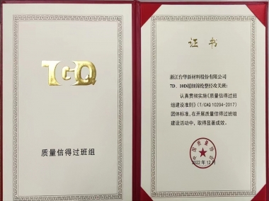 臺華新材“7D、10D超細錦綸整經攻關班” 獲“質量信得過班組”稱號