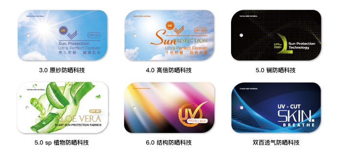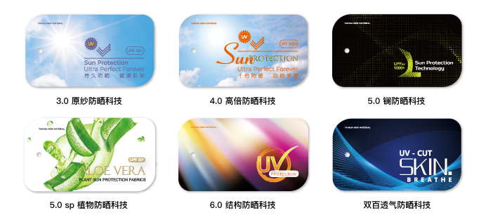· 5.0sp 植物防曬科技 | · 6.0 結(jié)構(gòu)防曬科技 | · 雙百透氣防曬科技 |