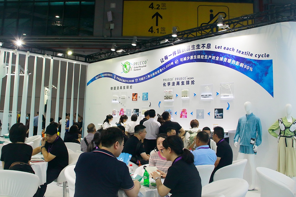 嘉華尼龍本次展臺(tái)以上古神獸-鳳凰的五彩羽毛為靈感,旨在通過(guò)絲縷重疊、通透玲瓏的展臺(tái),呈現(xiàn)如鳳羽般舒適、輕量、強(qiáng)韌、色彩飽滿(mǎn)的嘉華錦綸纖維。嘉華新一代高性能錦綸PRUTAC 色澤飽滿(mǎn)、輕盈雅致、柔軟舒適又堅(jiān)韌無(wú)比,帶來(lái)全新的面料體驗(yàn)。嘉華尼龍?jiān)偕\綸品牌PRUECO 傳遞環(huán)境友好理念,是踐行綠色低碳理念的最好體現(xiàn)。